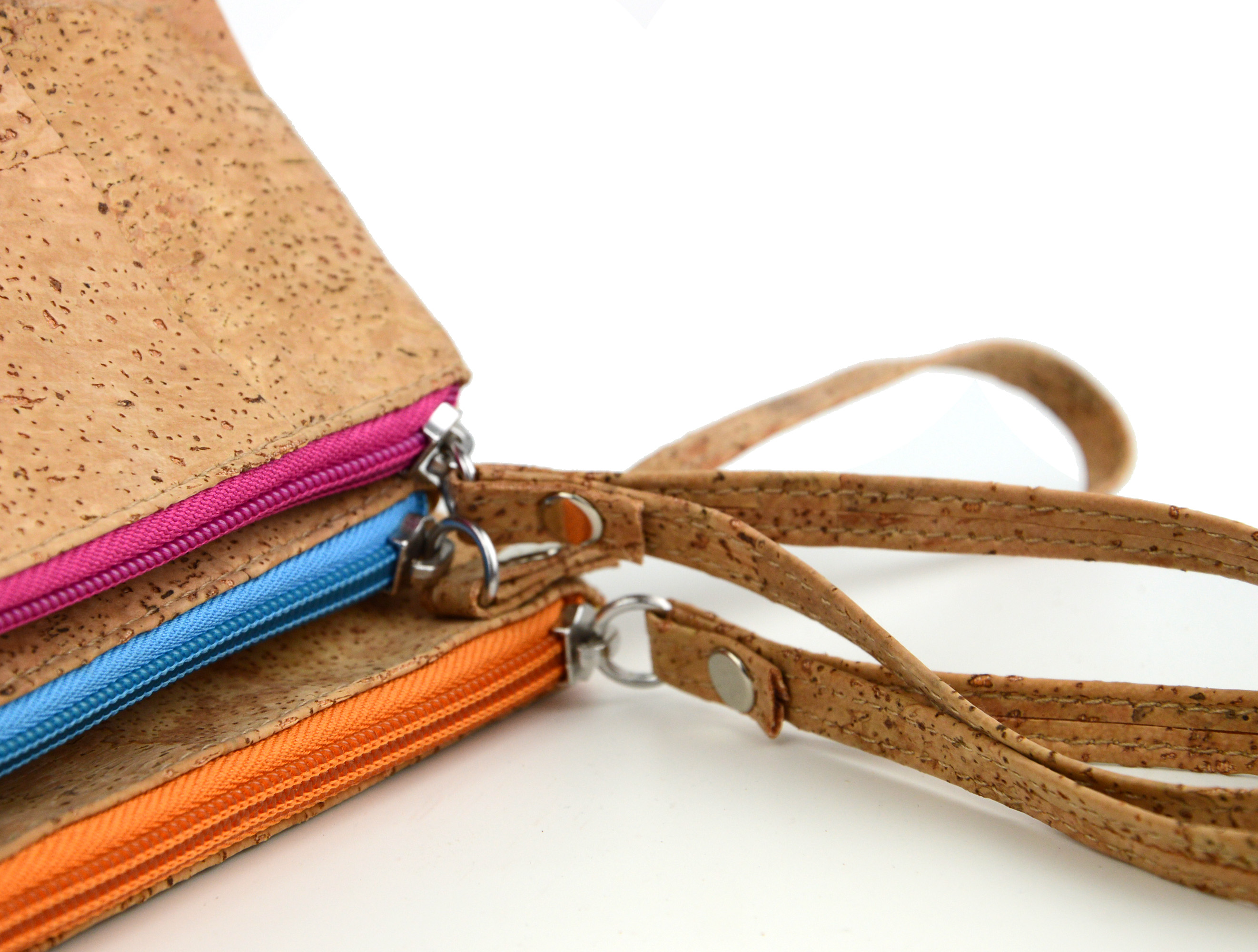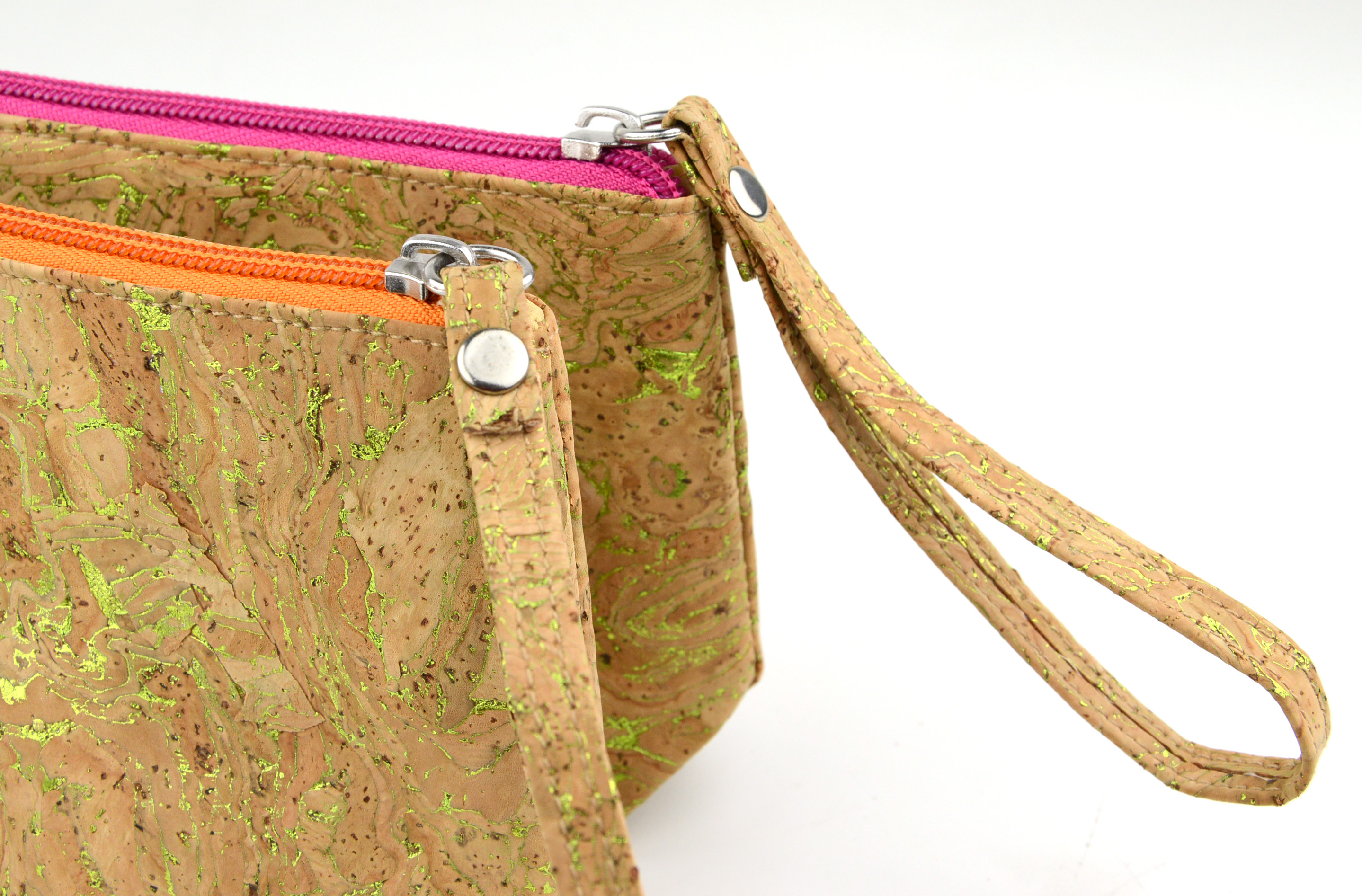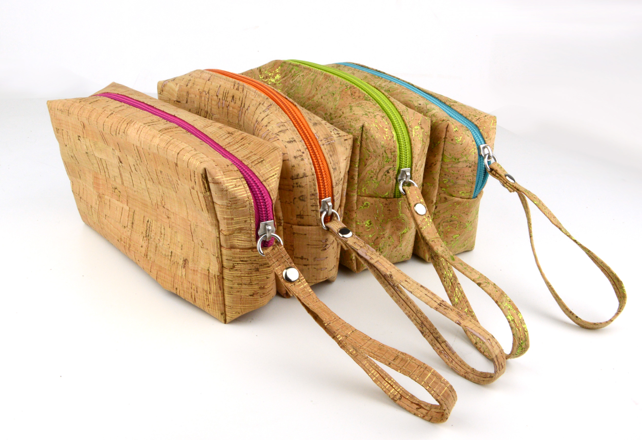 The cork fabric makeup bag is made of cork fabric. Cork fabric just like leather but it comes from cork oak tree instead of animals. They are eco-friendly, sustainable and suitable for vegans and vegetarians. It is 100% leather-free, no animal products are used. Cork is natural, regenerative and a sustainable raw material, which can help you avoid the use of plastic for a better, healthier planet. Cork fabric is very soft, silky touch, and very comfortable to use and wear. The cork cosmetic pouch has natural amazing stylish look, with beautiful gold flecks or threads.