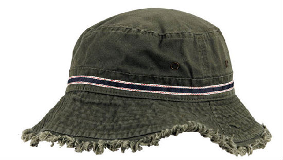 • Chino cotton enzyme washed floppy, woven trim outerband, frayed brim trim.