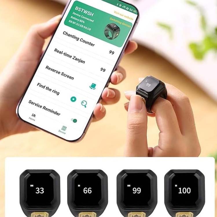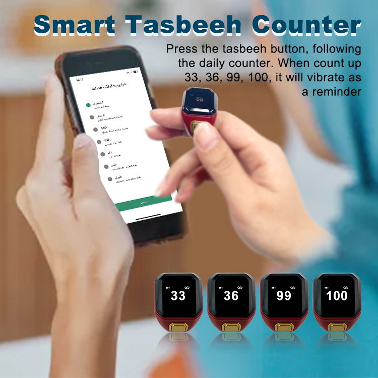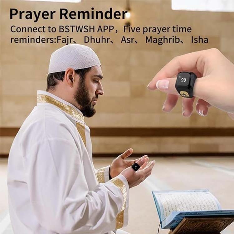 Built-in BT, Zikr ring is easy to connect with watch and smartphone. You can receive 5 prayer times reminder by Zikr ring,  watch or smartphone.