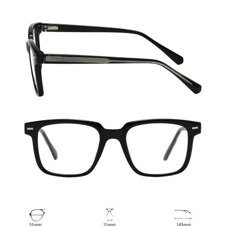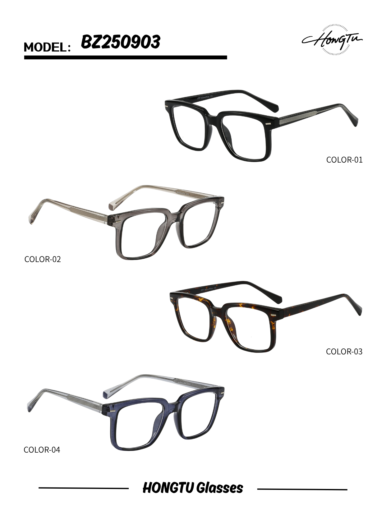 HONGTU Glasses Model BZ250903 features a modern square frame design with sleek metal detailing on the temples, available in four distinct color variants (COLOR-01 to COLOR-04). It has a frame width of 51mm, a bridge width of 21mm, and a temple length of 145mm, ensuring a comfortable and stylish fit. Combining contemporary aesthetics and exquisite craftsmanship, this model is a versatile choice for those seeking a fashionable eyewear option that suits various styles.