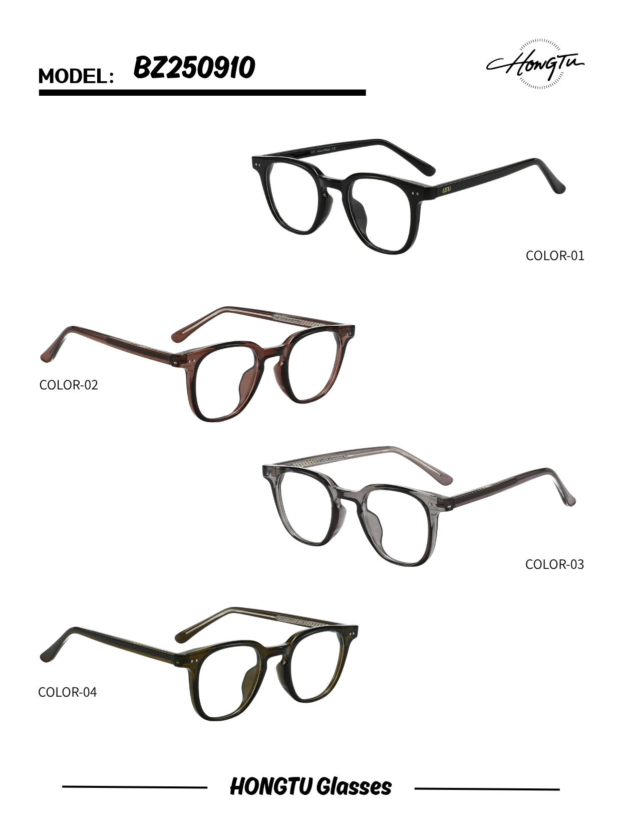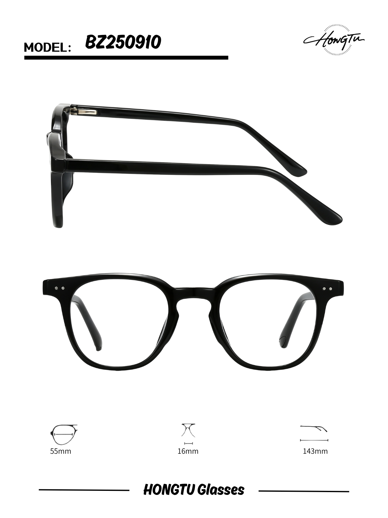 HONGTU Glasses Model BZ250910 features a retro - inspired square frame design, available in four distinct color variants (COLOR-01 to COLOR-04). It has a frame width of 55mm, a bridge width of 16mm, and a temple length of 143mm, ensuring a comfortable and stylish fit. Combining vintage aesthetics and practical wearability, this model is an excellent choice for those seeking to add a touch of classic charm to their look.
