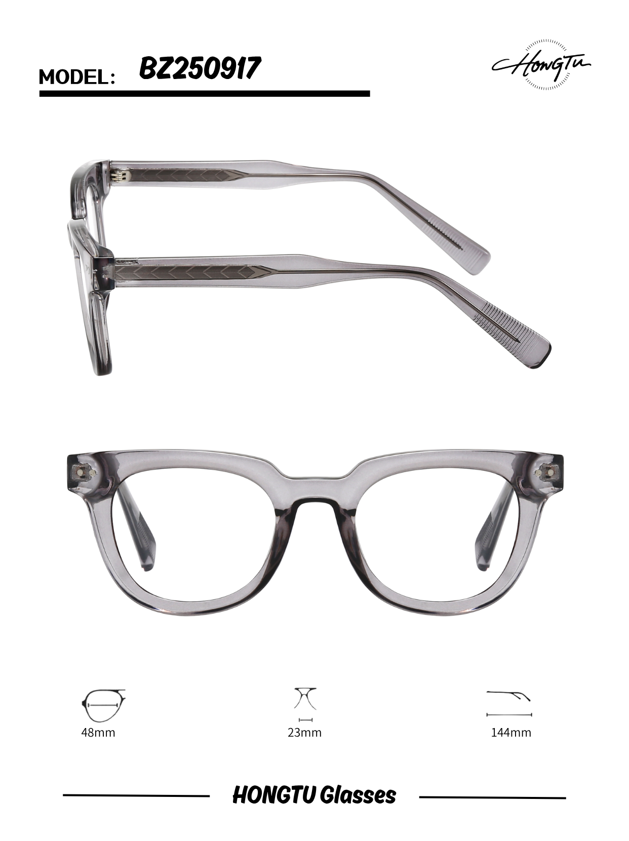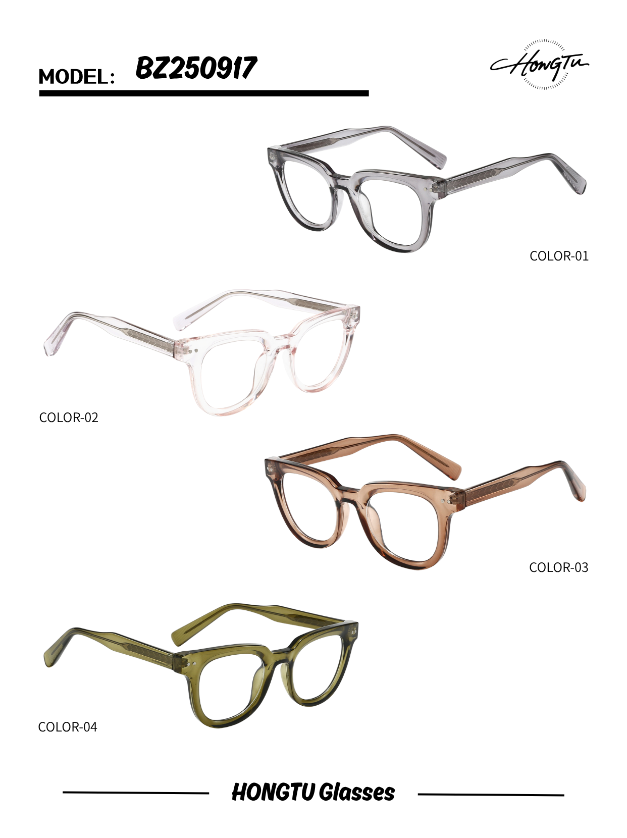 HONGTU Glasses Model BZ250917 features a retro - stylish frame design, available in four transparent color options (COLOR-01 to COLOR-04). With a frame width of 48mm, bridge width of 23mm, and temple length of 144mm, it fits the face well and ensures comfortable wearing, making it an excellent choice for daily matching and practical use.