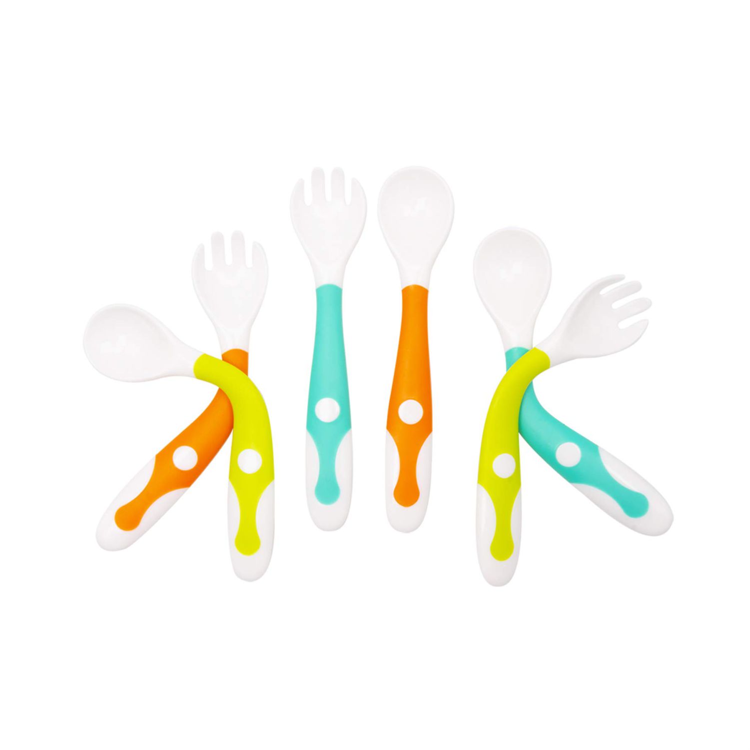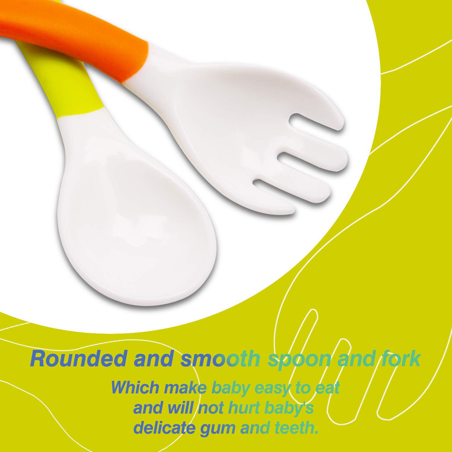 【Perfect for Self Feeding】Unlike other baby spoons, our training spoon is steel wire inside of TPE handle, soft, easy to grip, can bend to the various angles, bring baby fun of learning to eat independently