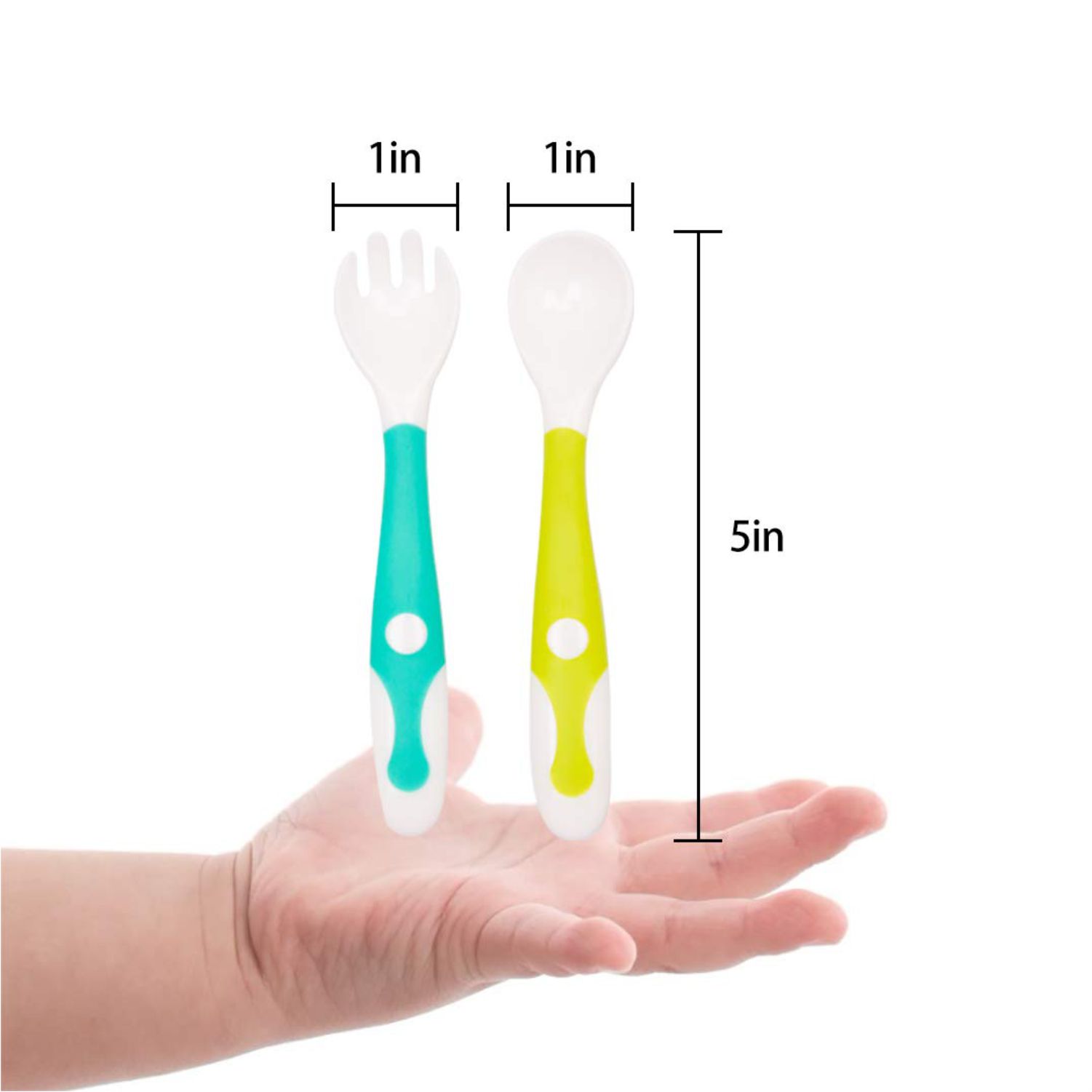 【Easy Hold】The cutlery's ergonomic, wide handle is covered by TPE soft glue, which is purposely designed to fit your baby's tiny hands and developing grip