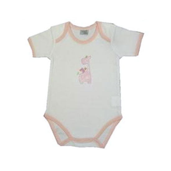 This is a babies' romper with short sleeves. Made of high quality material, this romper is soft and comfortable to wear. This convenient romper is also suitable for outdoor wear.