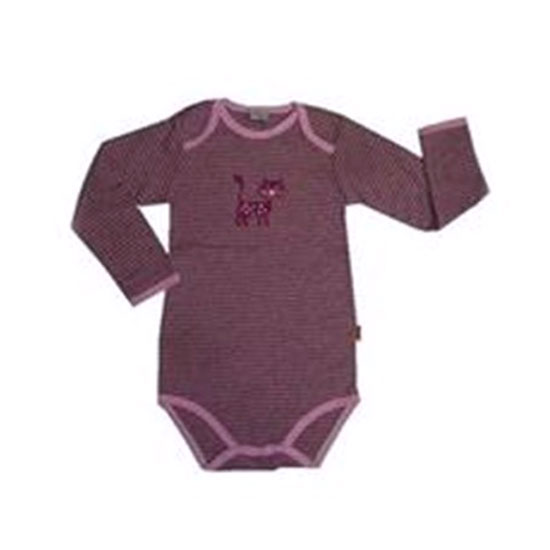 This is a babies' romper designed with long sleeves. Featuring fashionable stripe patterns, this romper is also great for the outdoors. This convenient romper is made of high quality material for comfortable wearing.