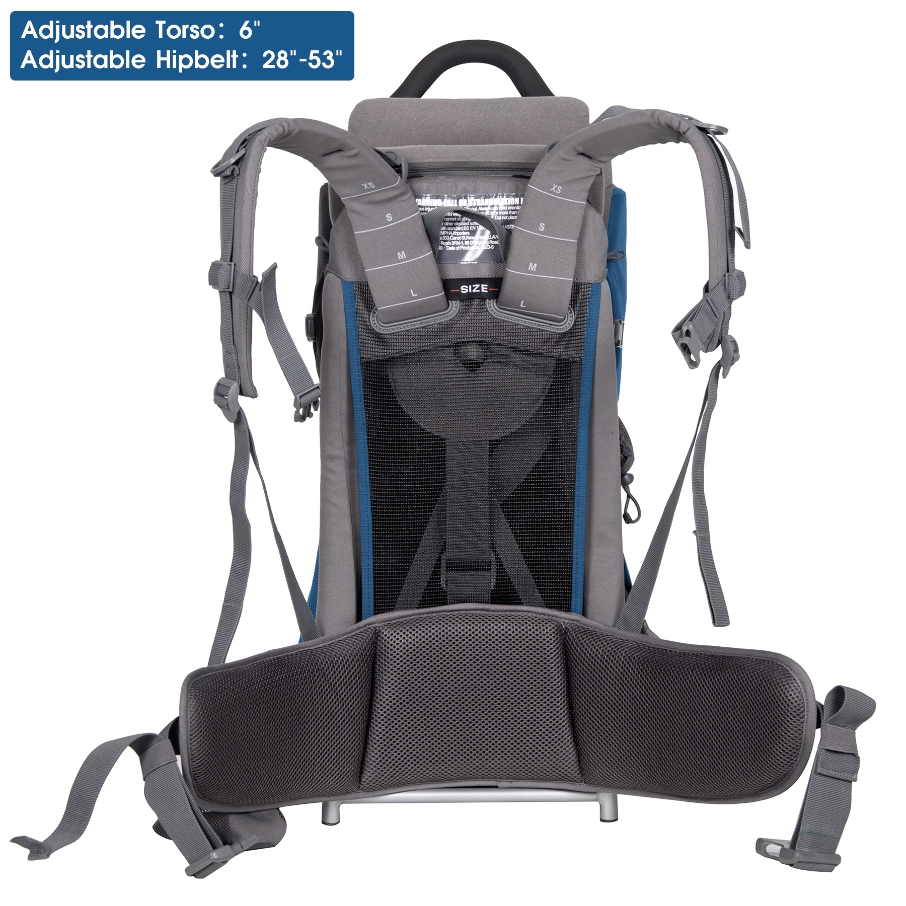 The child baby backpack carrier adjusts 6"/15cm torso length to quickly and easily fit a variety of adult users, even on the go.