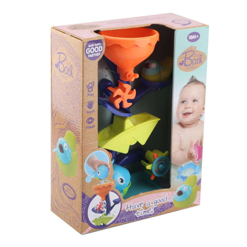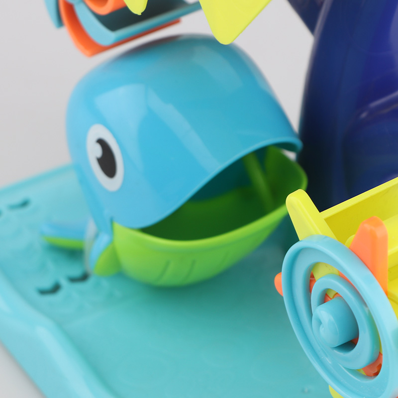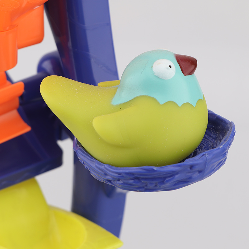 - Comes with a simple water energy system, a cute bird and a whale to hold water during the bath.