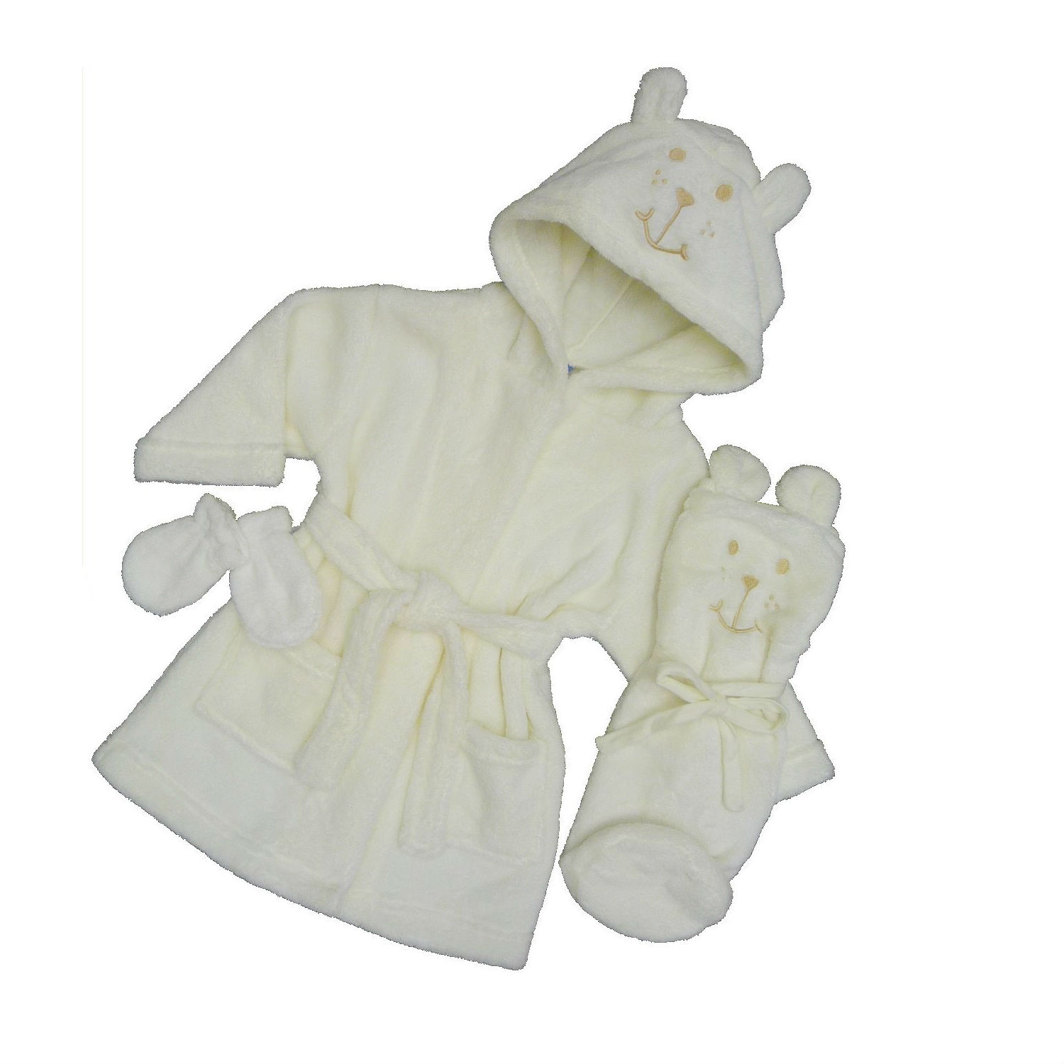 - Keep your baby in cozy warmth after bath time with this cute set of bathrobe and booties.