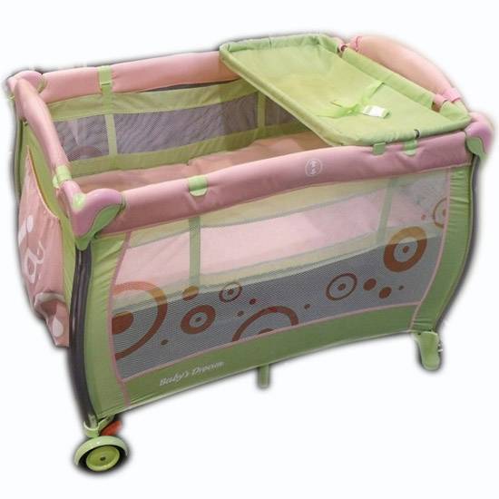 The baby bed is made of aluminum to boast high endurance and durability. It comes with double safety locks and vaulted short armrests. This baby bed features an outer arc side frame and dual-color corners for added style.