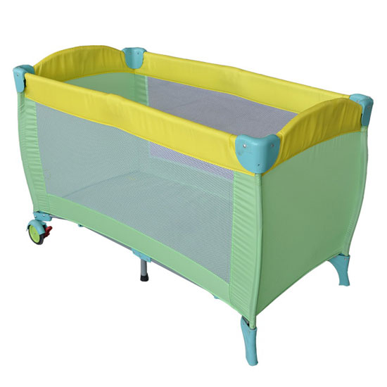 This rectangular baby bed is designed with side mesh panels for better air ventilation. Constructed of coated steel tubes, the baby bed boasts a durable construction. The foldable baby bed is also equipped with two wheels for easy mobility.