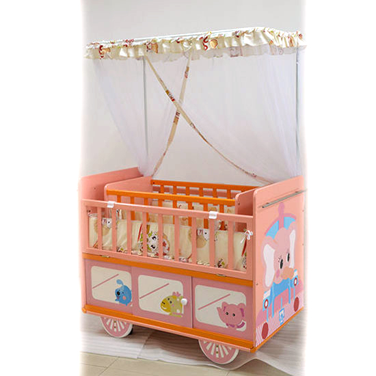 This baby bed appeals to your little one instantly with its cute and lovely design. It is finely printed with cartoon animal patterns in bright colors. The sturdy wheels allow parents to move it easily.