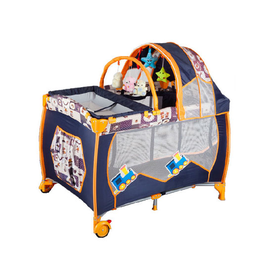 This is a baby bed that comes in bright colors for a vibrant look. It is fitted with hanging toys for added fun. This baby bed features four easy-to-glide wheels.