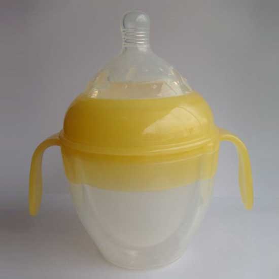 The displayed baby bottle is well made of BPA-free silicone for added safety. It is designed with a pair of handles for easy holding. This silicone nipple is meticulously deigned for easy suction.