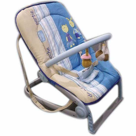 The baby bouncer features an adjustable seat for the right position. The aluminum tubes and plastic feet offer maximized stability and safety. The deluxe toy bar with hanging toys will offer your baby unlimited fun.