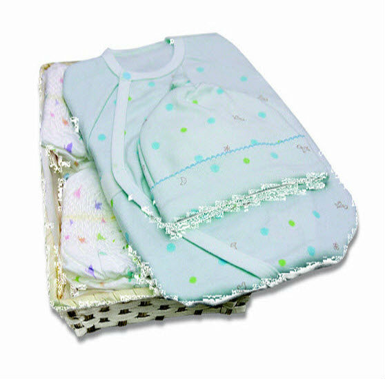 Boasting an adorable design in colorful dot pattern, this box set comes with a tie-knot hat, side-opening coverall, a pair of arm bands and 8 disposable diapers finely packaged in a premium basket for a nice gifting presentation. Filled with the finest essentials made of soft cotton, this exquisite set makes a perfect welcome gift for a newborn boy.