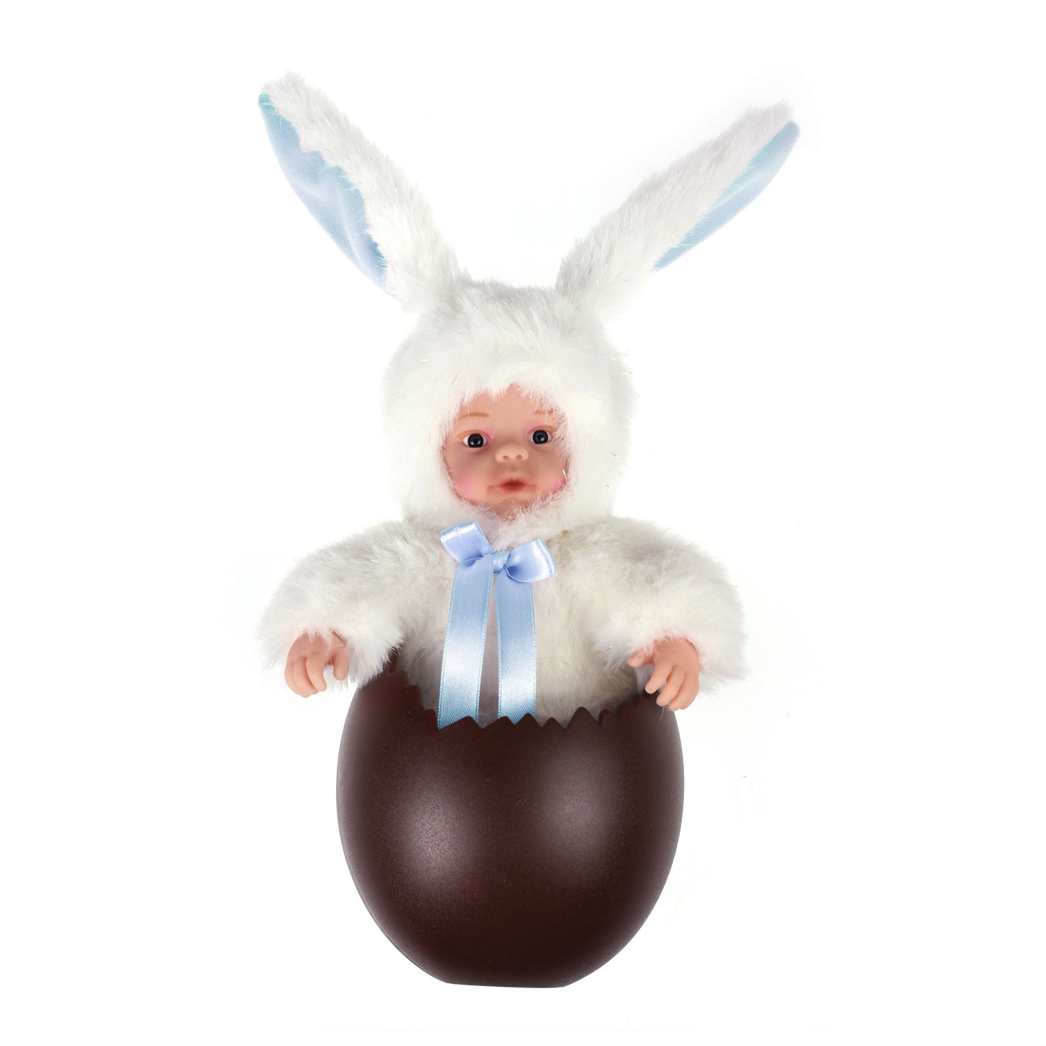A baby bunny is breaking the shell out and getting itself ready to welcome the joyful holiday. Dressed in a white bunny suit, the baby sports overload of cuteness with an innocent face and shaggy touch. The chocolate egg comes with a flat bottom which can stand firm alone. Combining the two essential elements of Easter, this is a must-have seasonal decorating item.