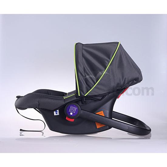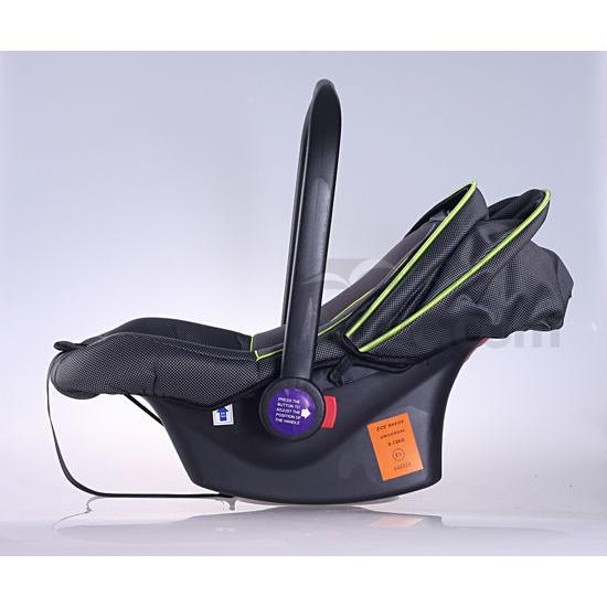 As shown is a baby car seat that can be used as a rocking chair and a carry cot. The 3-point belt harness system can ensure secured fastening. A soft inner sheet is added at the head red and hips for enhanced comfort.