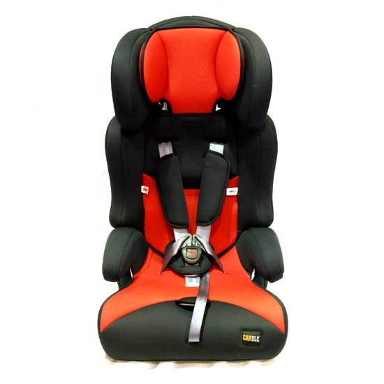 This babies’ car seat boasts an eye-catching look in sharp orange and black. The seat is thickly cushioned to provide great comfort for children. A headrest is added to suit for children in different ages.