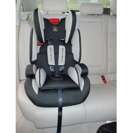 Pictured is a car seat made for the little passengers in car. The forward-facing car seat is suitable for kids of 9 to 36kg. Its padded and ergonomic design promises comfort for the young babies.