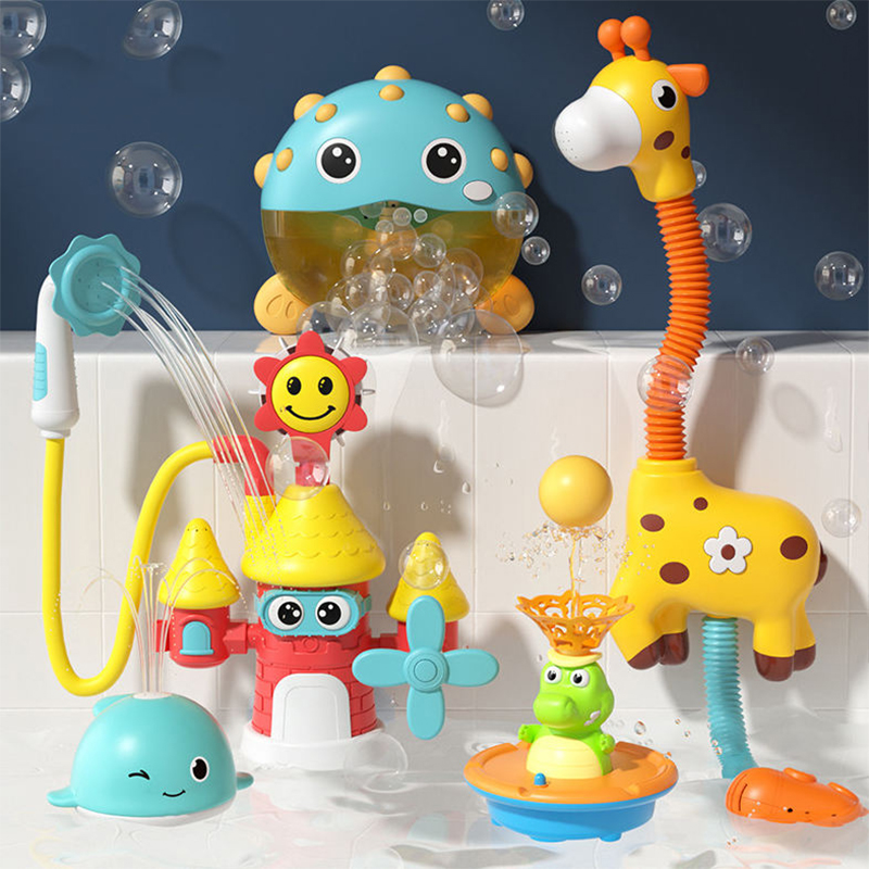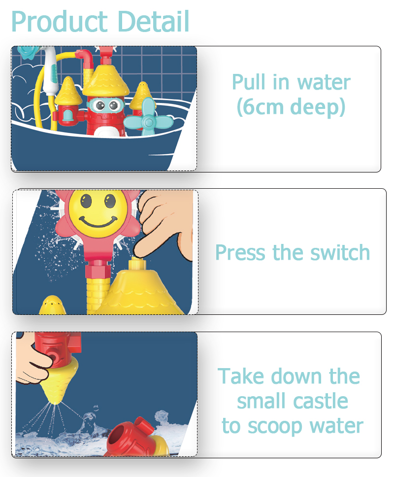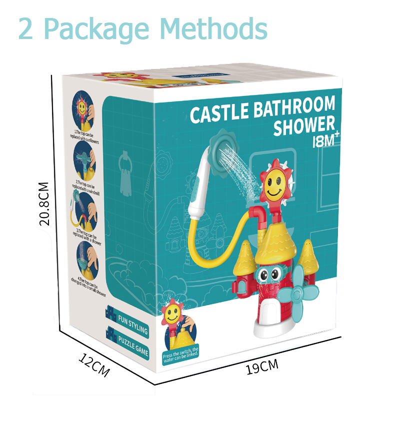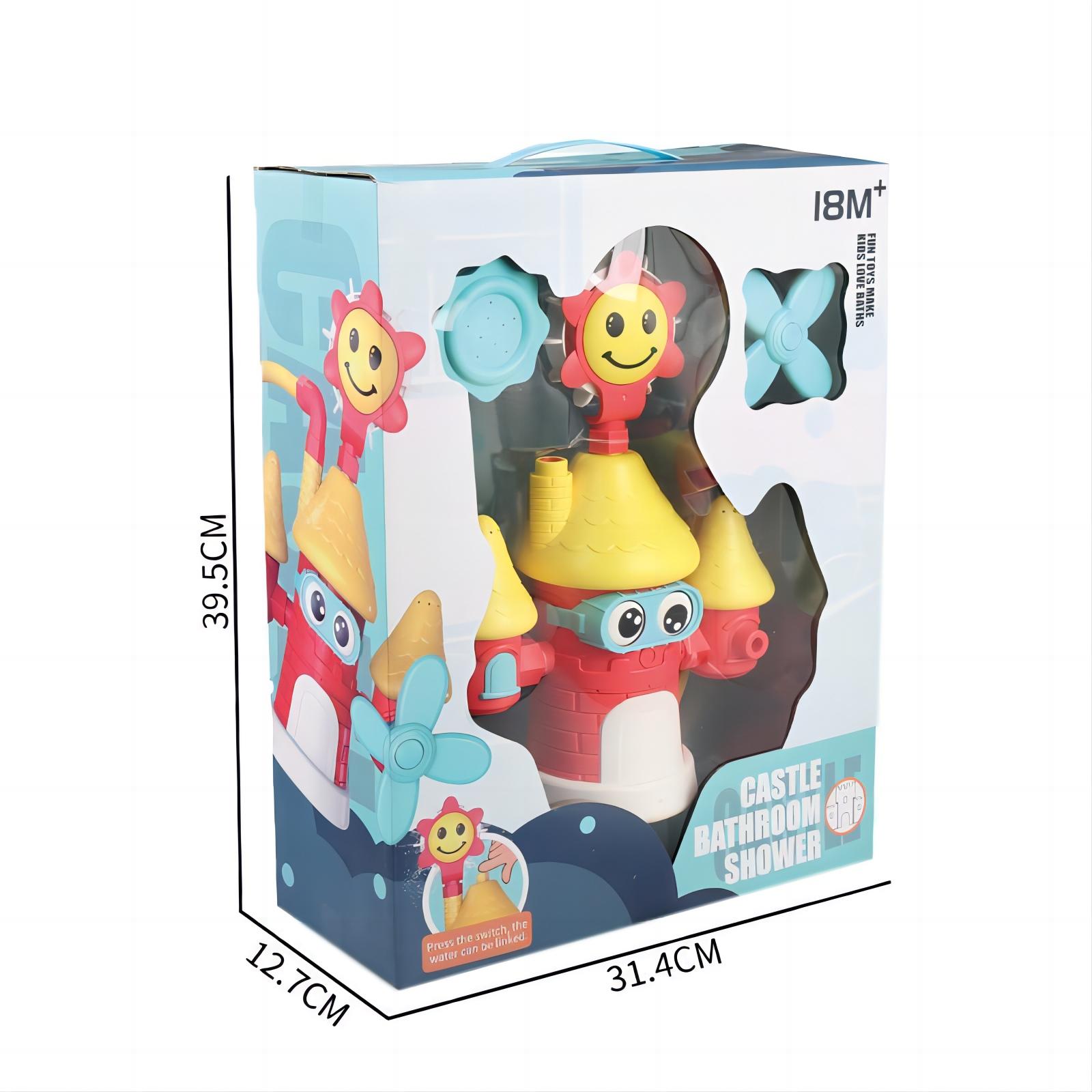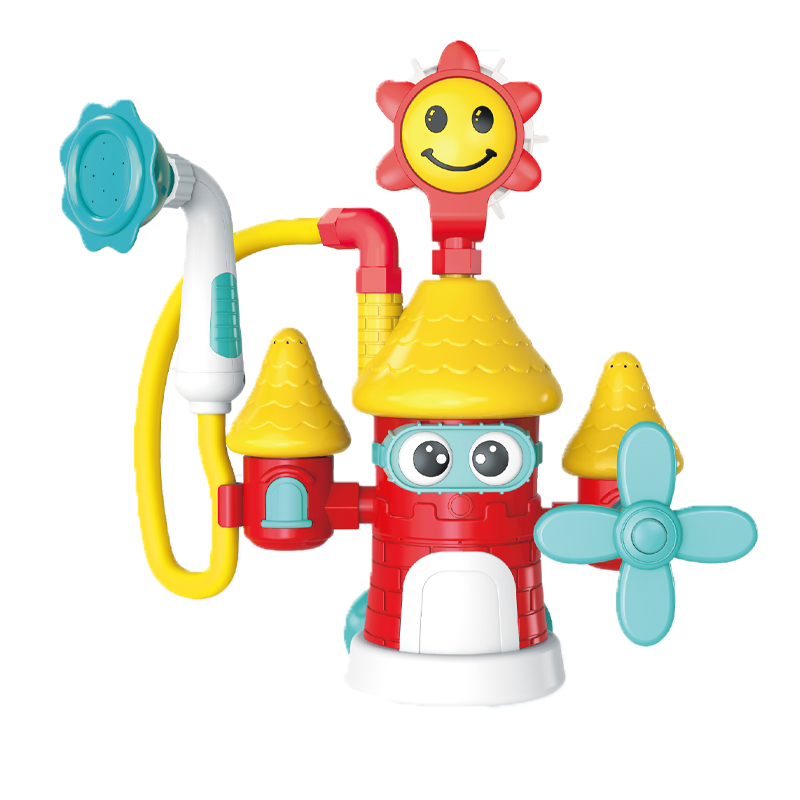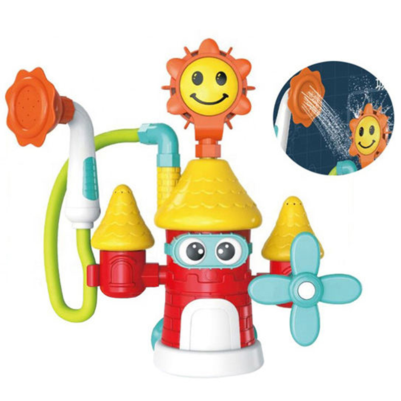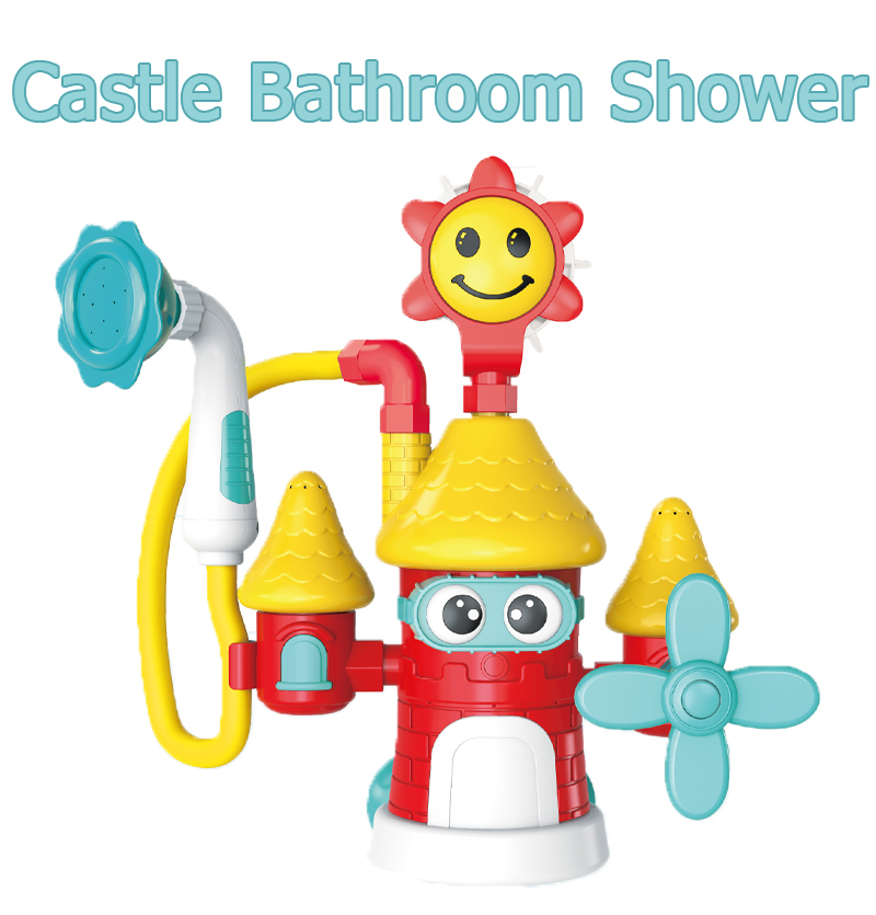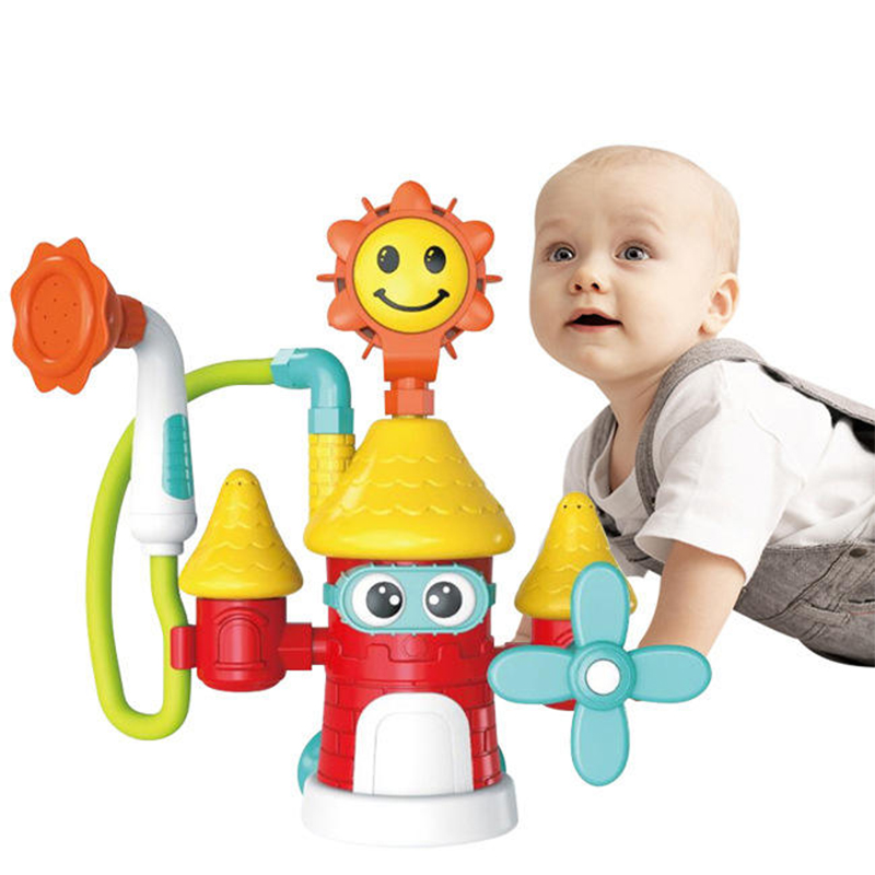 QS Wholesale Baby Bath Water Spray Toys Floating Swim Electric Castle Bathroom Bathtub Sprinkler Shower Toy For Kids