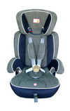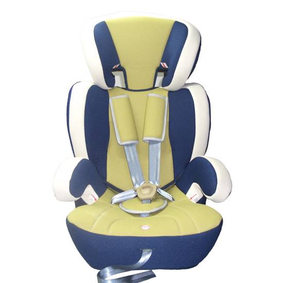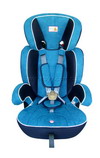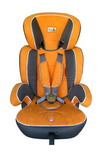 As shown is a car seat for children aged 9 months old to approximately 12 years old. This car seat can be placed forward or backward, with a central adjustable belt and backrest.