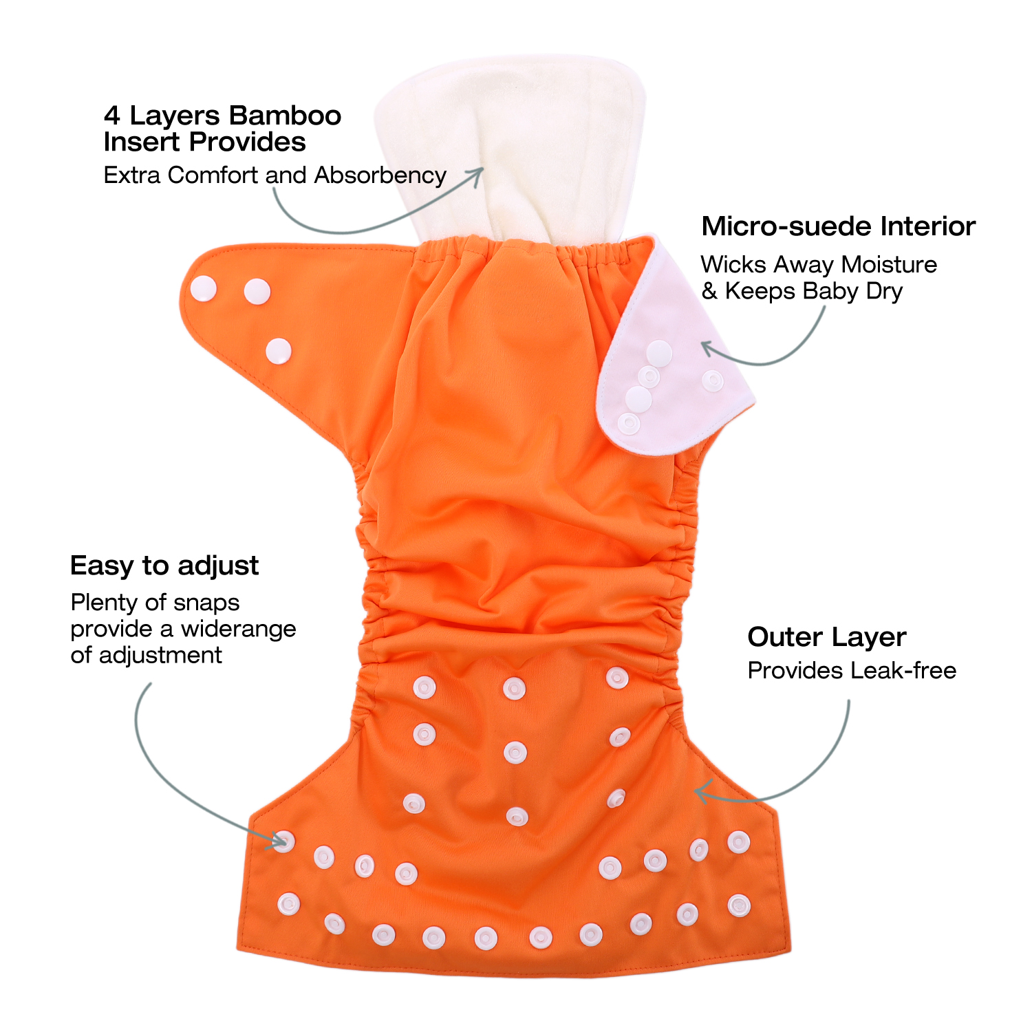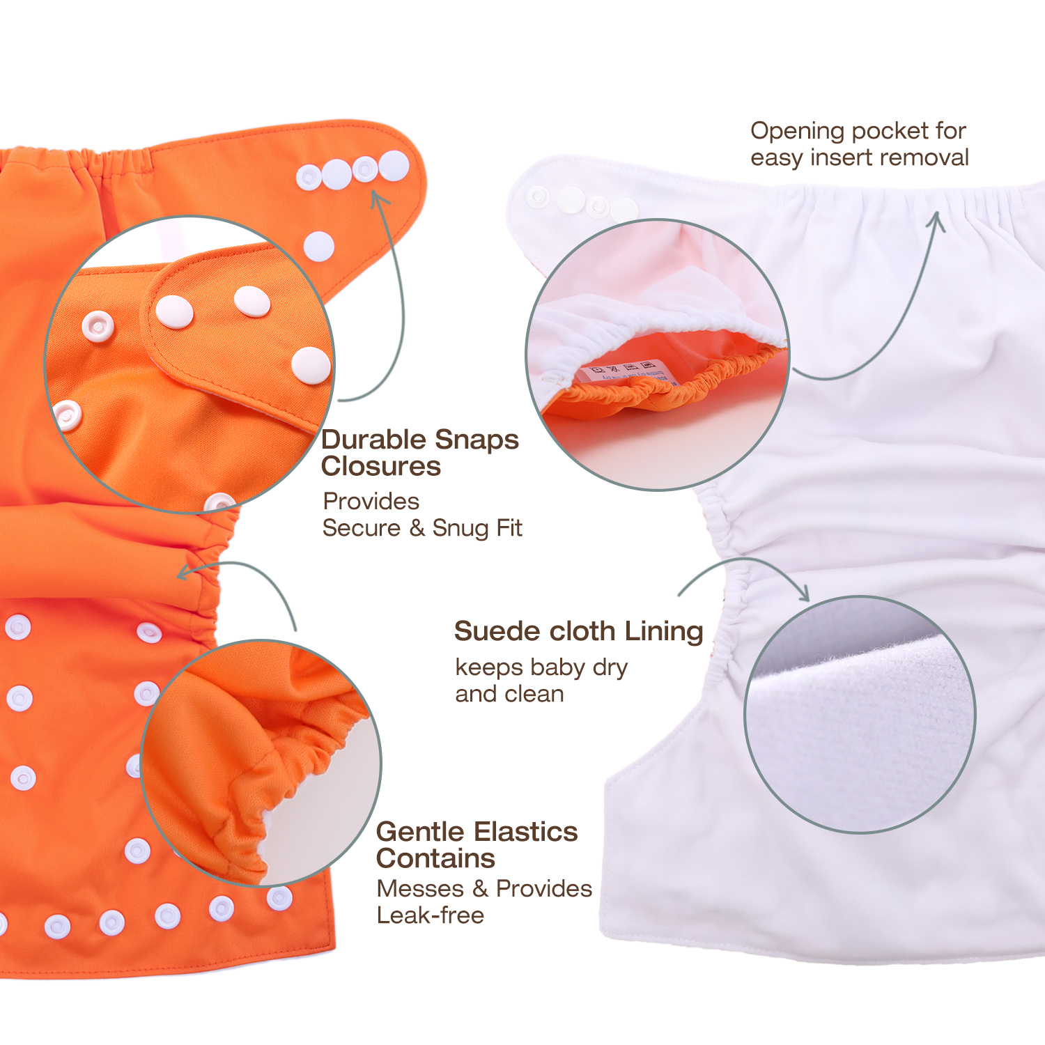 Baby Cloth Diapers One Size Adjustable Washable Reusable for Baby Girls and Boys with cloth diaper bag and booster insert
