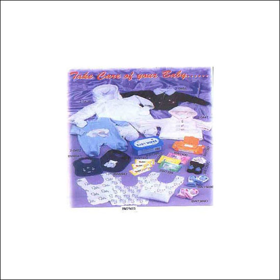 • Various kinds of baby products including baby clothes, baby wipes, baby paper bibs, baby socks and baby cloth bibs.