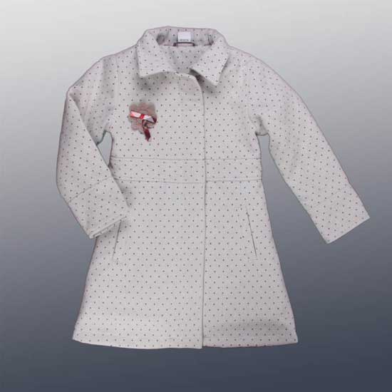 This elegant and fashionable coat is dedicated for junior girls. It is made from high-quality outdoor material with beautiful and fashionable dotted patterns. The general look is very smart. The floral embellishment adds an elegant accent to the baby coat. The detachable padded lining design makes it very appropriate for every season.