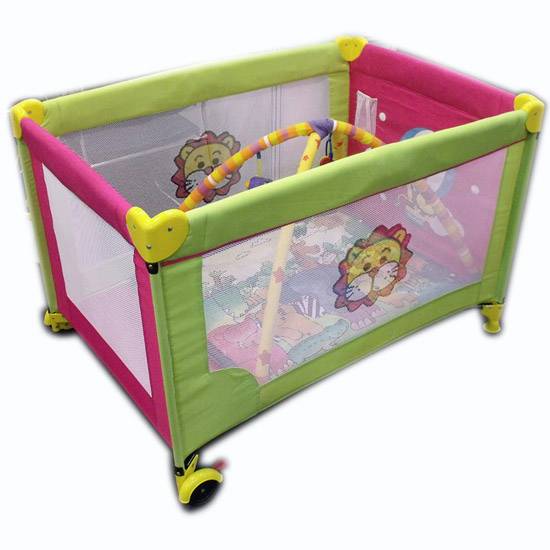 The baby cot features lovely animal prints with a toy bag. It has a nice and comfort touch as well as scrolling wheels for enhanced mobility. This versatile baby cot is an ideal choice for your beloved baby.