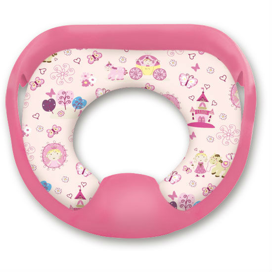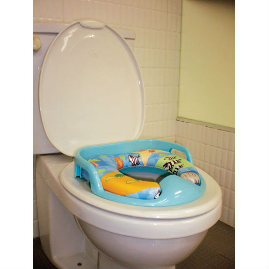 • Baby cushion potty seat with plastic backing, handle & removable deflector