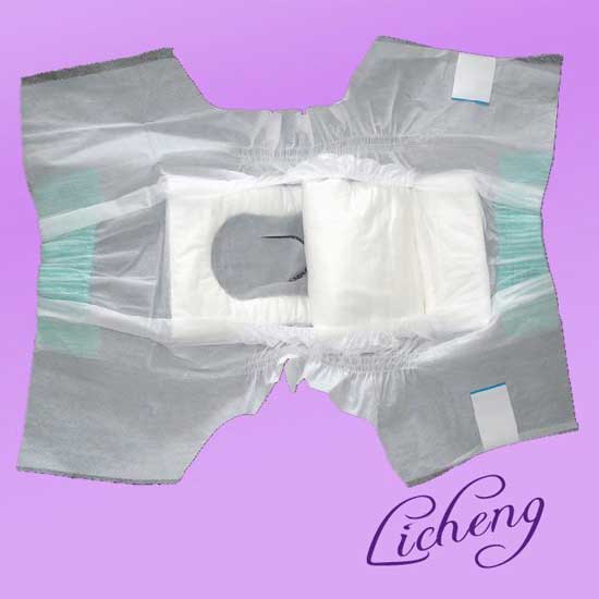 As shown is a baby diaper coming in a disposable style. The elastic waist and back fit babies’ body perfectly to avoid leakage. This diaper features excellent absorbing power to support large volume of discharge.