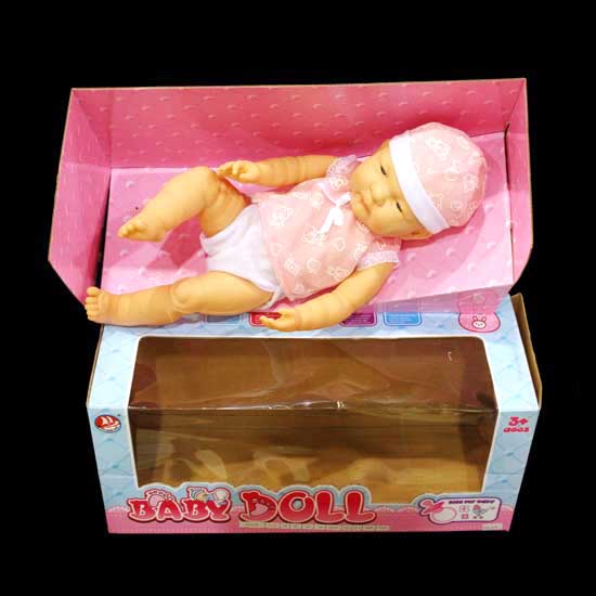 This is a lovely baby doll that comes in a window box. The doll is dressed in pink clothes with a hat. This baby doll is made of high quality materials for your children's safety.