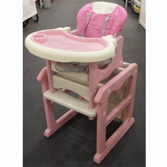 The baby high chair features a reclining seat with a small table in the front. The adjustable height allows you to feed your babies with ease. This plastic high chair is essential for homes with babies.