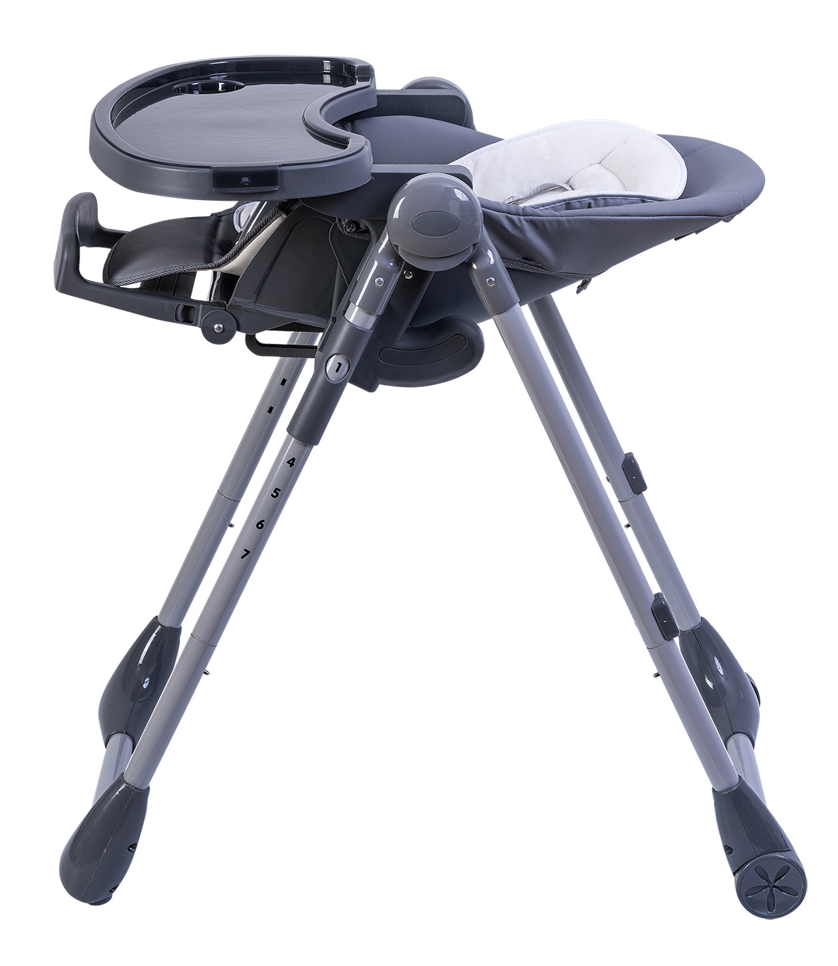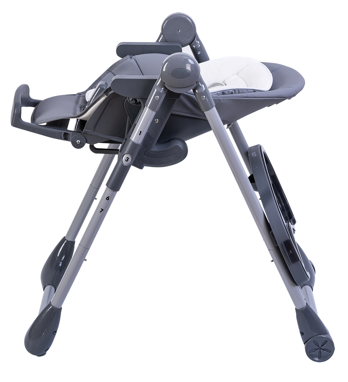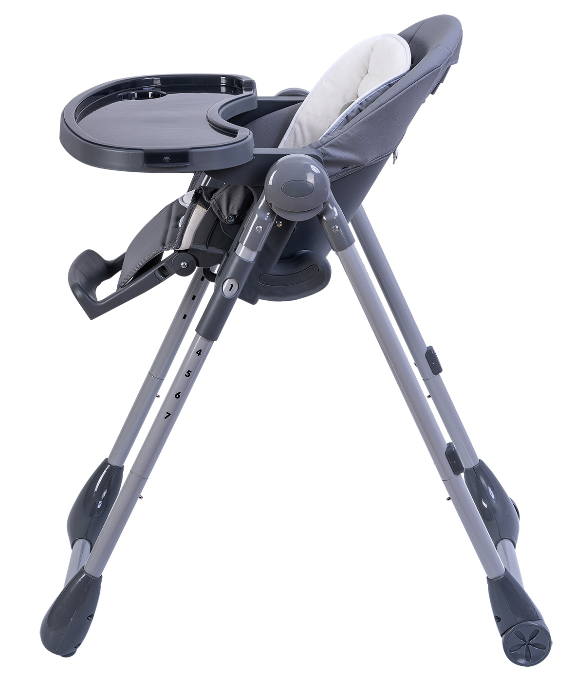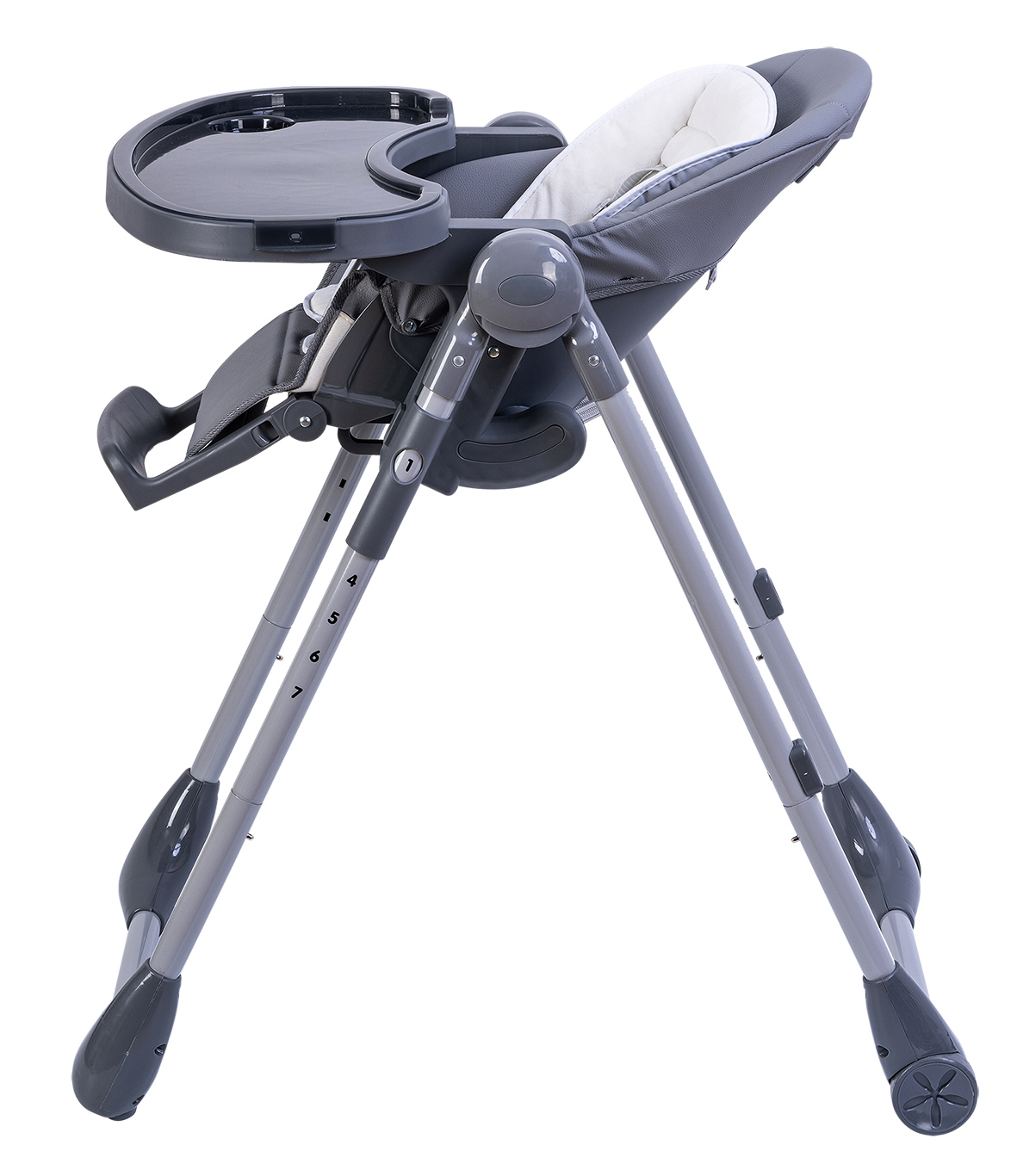 The baby high chair shows an adorable design with adjustable height and backrest position. The foldable design allows easy carrying. This baby high chair is finely made of eco-friendly steel tube, offering a sturdy construction.