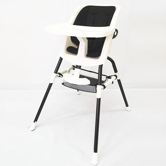 This baby high chair is sturdily constructed for enhanced durability. It comes in black and white for a classic look. The ergonomic seat allows hours of comfortable sitting.