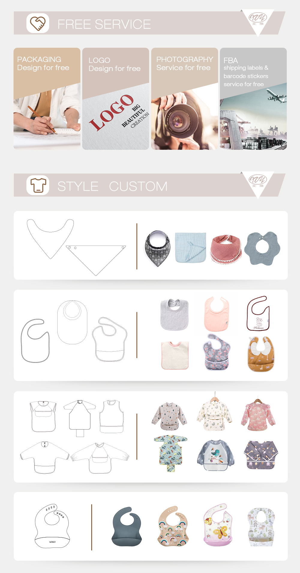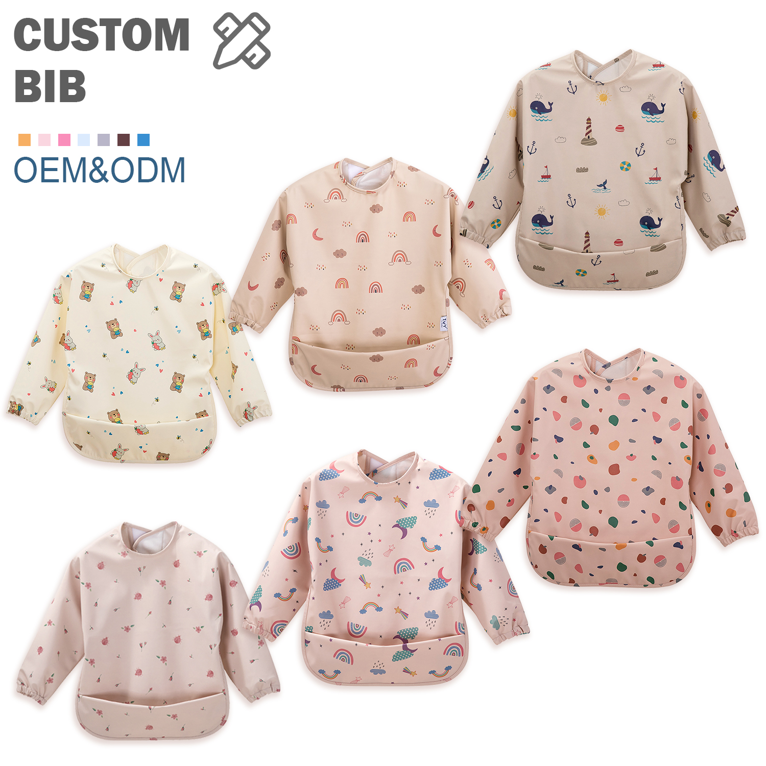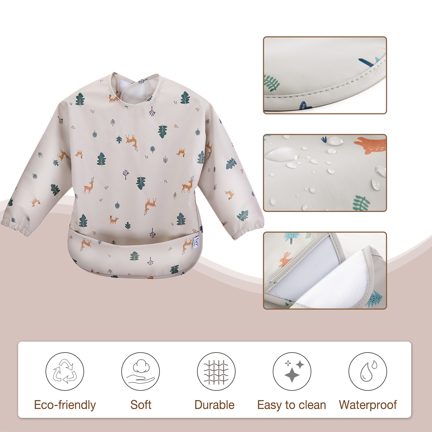 Useage: | Our waterproof bibs for babies are suitable from 6 - 24 months, with hook and loop for a quick, adjustable fit They are lab-tested, BPA and phthalate-free. Fully waterproof baby bibs don’t absorb water like cloth feeding bibs, they’re super soft and not irritable to wear for toddlers or infants new to eating. |
