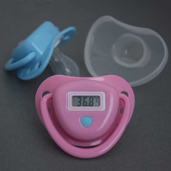 Displayed here is a pacifier thermometer designed for babies. It comes in different colors for selection. It offers measurement with high precision.