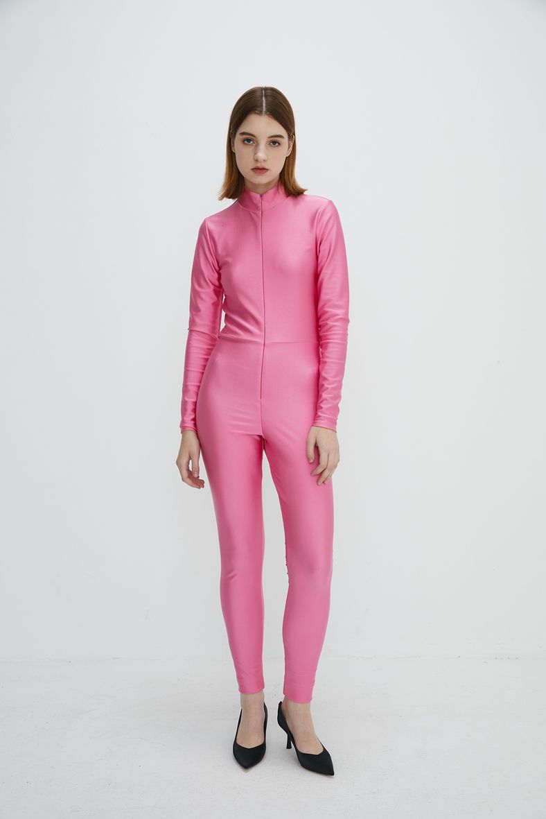 Step into style and comfort with our striking pink activewear bodysuit. This sleek, form-fitting design features a high zip collar and long sleeves, providing both coverage and breathability. Crafted from lightweight, flexible fabric, it moves with you for maximum performance during workouts or leisure. Perfect for dance, yoga, or simply lounging, this bodysuit adds a pop of color to your active wardrobe. Pair it with heels for a bold statement look, or keep it casual with sneakers. Embrace your individuality and confidence in this eye-catching piece, made for the modern trendsetter!