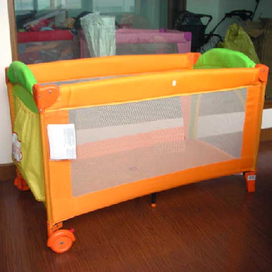 This is a multifunctional baby playpen that can be used as a baby crib and also a baby travel cot. It features a colorful structure in bright colors with mesh sides. The sturdy wheels are designed for parents to move it with ease.