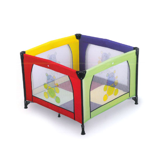 This is a baby playpen that comes with a colorful design. The four sides are made of mesh with cartoon prints for a fun effect. This square baby playpen is a space-saving choice.
