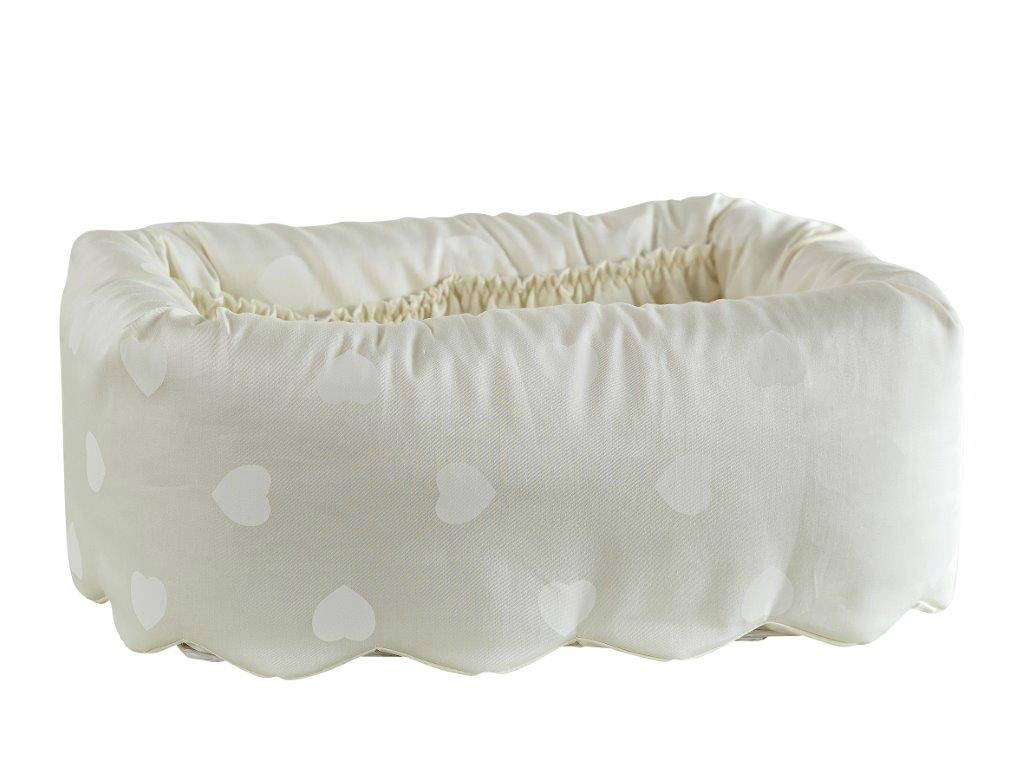 Featured here is a quilted basket for babies to sleep comfortably in. It has a breathable structure and offers a soft hand feel. This baby basket comes in a cream tone and is adorned with heart patterns for a lovely and elegant look.