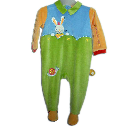 This baby romper features a vivid-colored exterior, which is sure to win over your baby’s favor. The embroidered rabbit and snail add irresistible cuteness to the appearance. Spruce up your kid with this lovely romper.