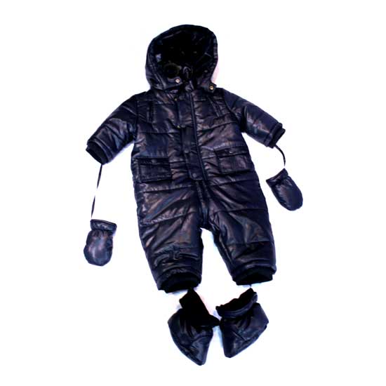 The baby rompers suit is made of high-quality polyester with quilted patterns. It comes with a hood, front snap button closure and two front pockets. This rompers suit features matching pairs of smitten and foot warmers.