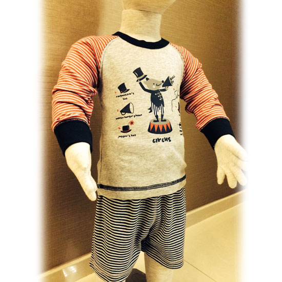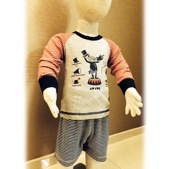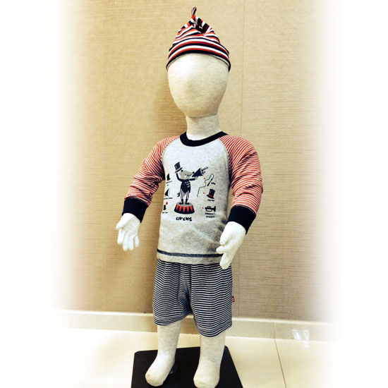 This baby wear set comes with a tee shirt and a pair of shorts. This shorts set is made of 100% cotton for a comfortable touch. The tee shirt features a round neckline and long sleeves with striped patterns.