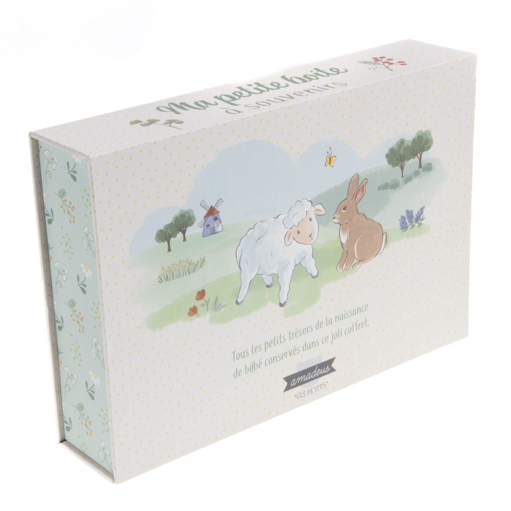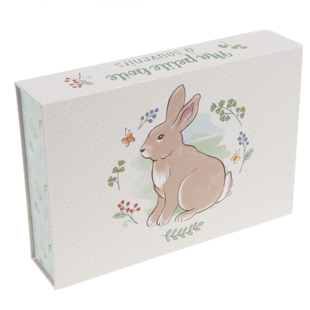 Capture the magic of a newborn’s early days with this beautifully illustrated keepsake box – perfect for storing first memories and milestone treasures.