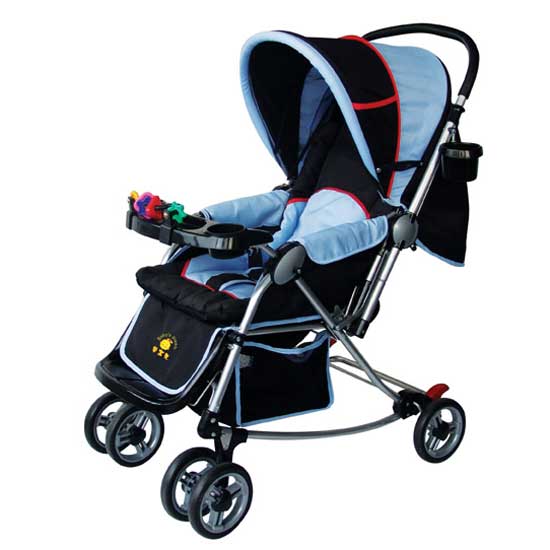 Showcased here is a baby stroller with a 3 in 1 design. The pram can be reconstructed into a baby rocker or a baby walker. Completed with a mosquito net, the canopy can shield your beloved one from intense sunshine as well as annoying mosquitoes.