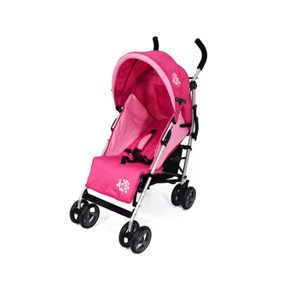 This is a robust baby stroller in a lovely pink color. With an adjustable harness, this baby stroller features a front bumper for safety. This easy-to-use stroller also comes with feet muffs for convenient usage.