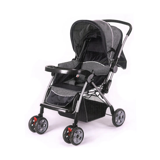 This is a fashionable baby stroller that is sturdily constructed for enhanced durability. The ergonomic seat allows hours of comfortable sitting. This baby stroller is finished with a large storage basket for added utility.