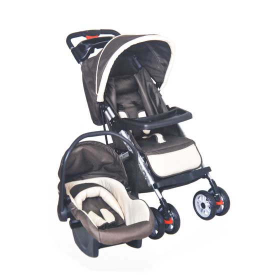 This baby stroller and car seat set is a great companion for parents who are always on the go. The baby stroller features a front tray and a safety harness system. The baby car seat is designed with a top handle for added convenience.
